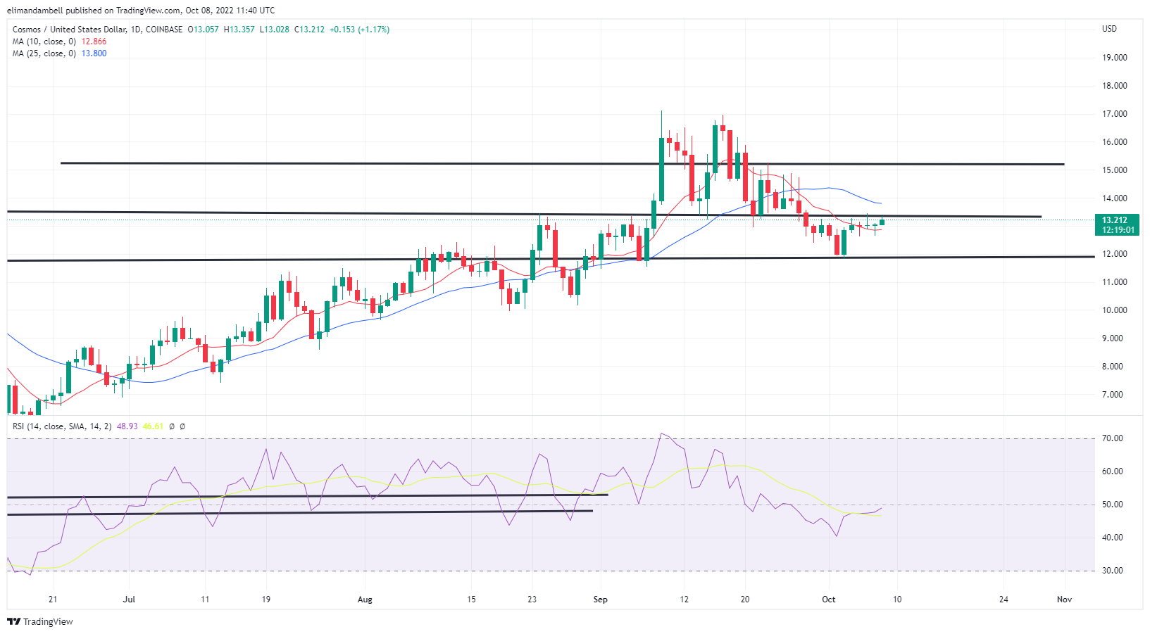 This week, cosmos has mostly consolidated, trading betwixt $12.00 and $13.15, nevertheless bulls person present moved to surge beyond this constituent today.