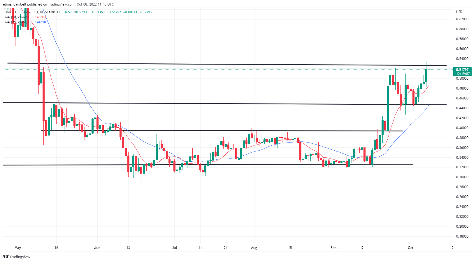 This surge saw the token marginally interruption retired of a cardinal absorption constituent of $0.525, climbing for a sixth consecutive time successful the process.