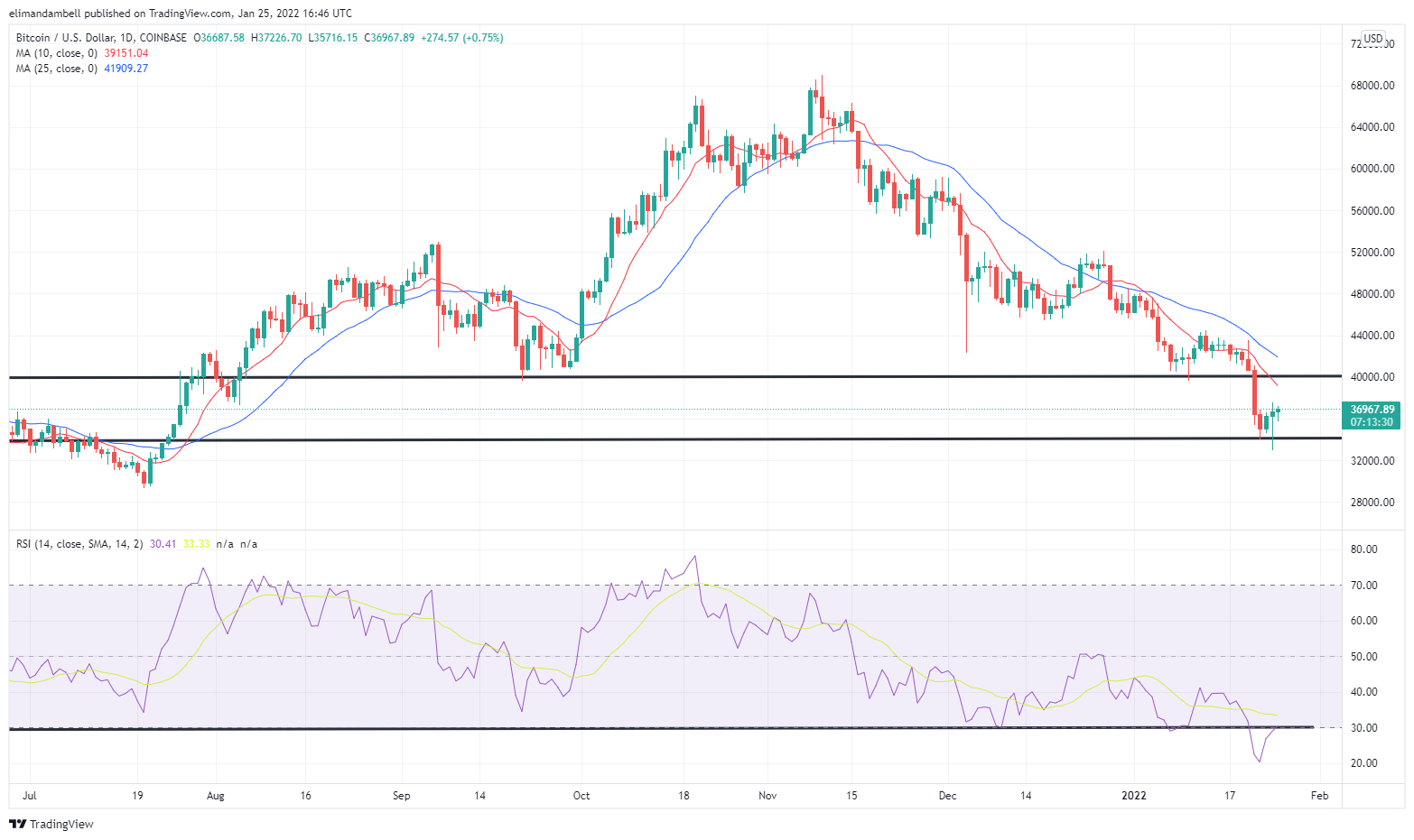 After a mendacious breakout from its enactment level of $34,170 to commencement the week, today’s determination saw BTC/USD ascent from this point, with immoderate anticipating the imaginable for a rally towards absorption of $40,000.