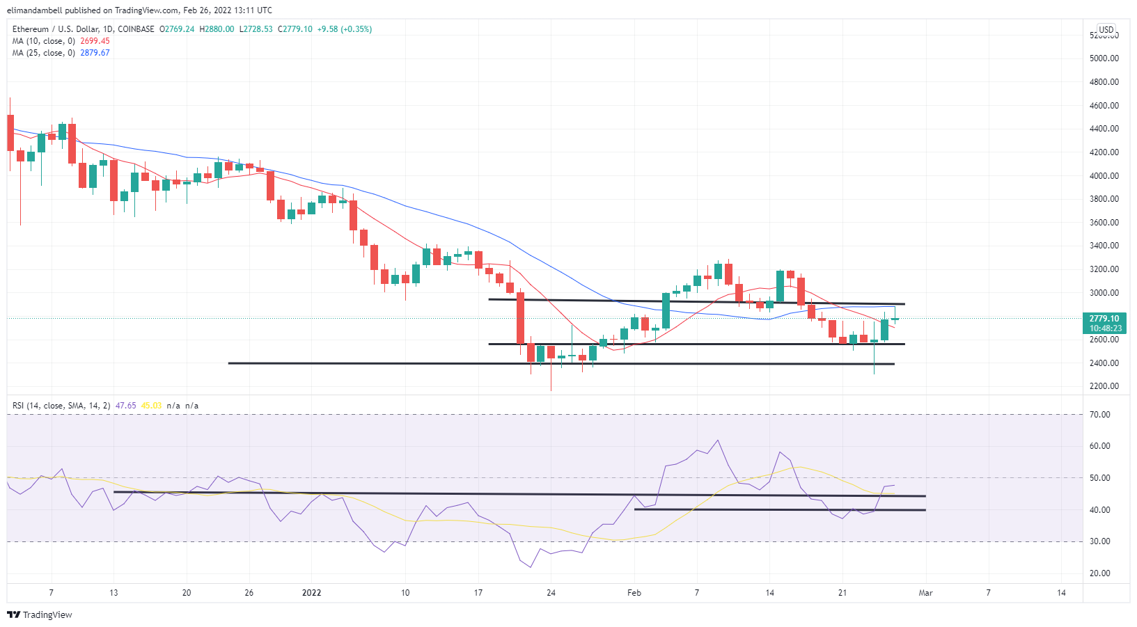 As of writing, ETH/USD is trading 2.16% higher, aft rising to a highest of $2,835.66, pursuing Friday’s intraday debased of $2,664.45.