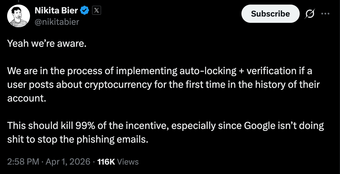 X Set to Roll Out Kill Switch to Curb Crypto Phishing
